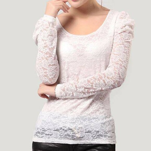 Top made of stretch lace; lined. Brand : Baiyumi. Stretch lace. Color : White. Size : Small.