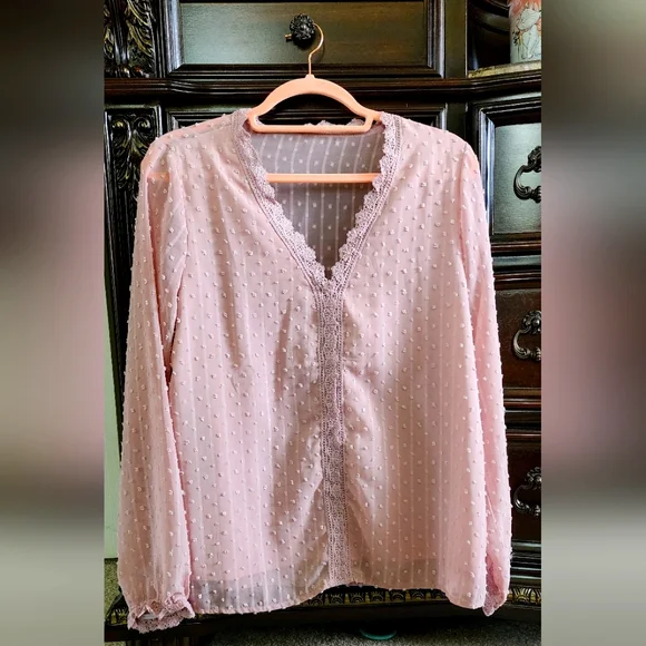 Dusty rose blouse with lace trim. Hardly worn. In like new condition.