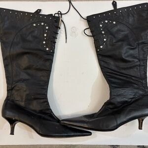 Lace up leather and rhinestone boots - kitten heel