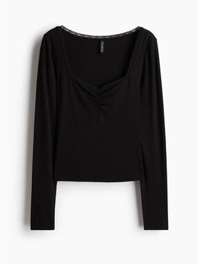Lace-Trimmed Ribbed Long Sleeve Tops