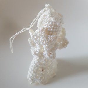 @21forests If they apprecieate vintage stuff. It doesn't look new, it's probably from the 90s or earlier. So there's discolouration, especially the few brown threads you can see in picture 3. I would say the pictures are slightly overexposed, so expect it to be more cream than white. Other than that it looks good, there aren't broken pieces or loose threads or anything like that.