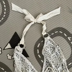 Size is adjustable with string, it is a good fit for whom wears S or M. Once worn at the honeymoon and the condition is like new.