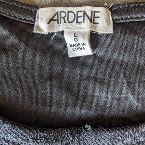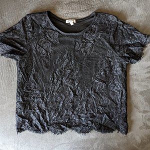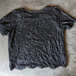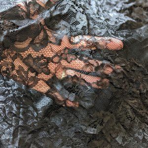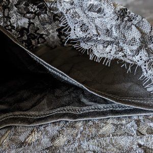 Has a sold black cover under the lace (it isn't see through at all) Short cut Women's large