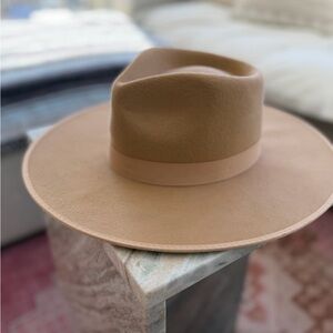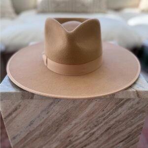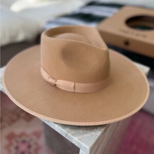 Inspired by vintage men’s styles, this hat is designed to make a statement. A stiffened wool fedora with rigid crown design. Trimmed on hat and rim with tonal gross grain ribbon.