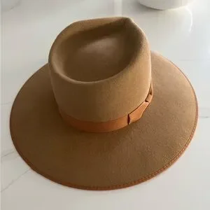 Inspired by men’s vintage styles, the Rancher is a stiffened wool fedora with rigid crown design and trimmed with tonal grosgrain ribbon.