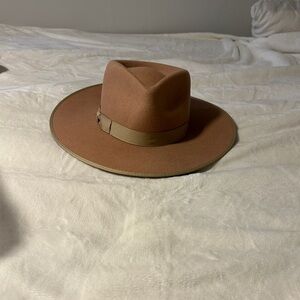 Hi! I’m not 100% sure to be honest. I can dig it out later, out for the evening. I would say the brim is a bit on the softer side. Could you cut out the black piece to provide more room? I wonder if the wool provides any slight stretch