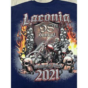 Laconia 98th New Hampshire Motorcycle Bike Week 2021 Blue Shirt Large Tombstone