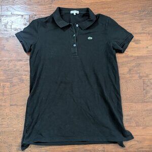 Lacoste Black Pique Polo Shirt Men's Size 46 XL Croc Logo Authentic