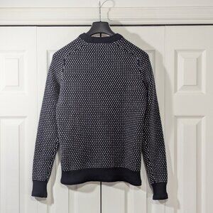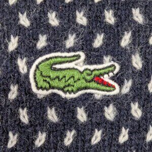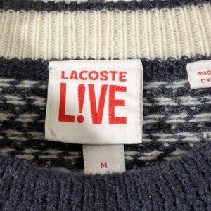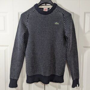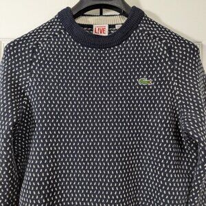 Lacoste Blue and White Jaquard Crew neck Pullover Sweater - Size M