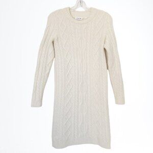 Lacoste Cable Knit Wool Blend Sweater Dress - White, Size 34