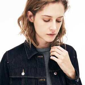 Timeless indigo wash, structured fit, premium Lacoste detailing
