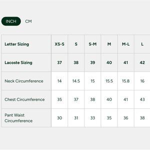 As per Lacoste's size chart, a 42 in Lacoste is a 43/16".