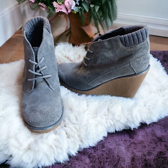 Lacoste Gray Suede Leren Lace Up Wedge Boots in Size 6