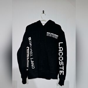 Lacoste LIVE x Minecraft Men's Black Graphic Print Loose Fit Hoodie - Size L
