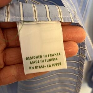 Lacoste stylish blue striped shirt. Perfect for any occasion, this shirt offers both comfort and elegance. Size 39 logo has lightly faded still perfect condition