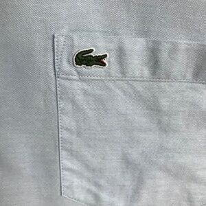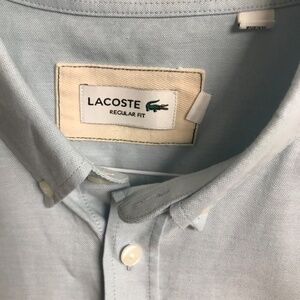 Lacoste Men’s 💯 % Cotton Button Down Short Sleeve Shirt Light Blue 2XL