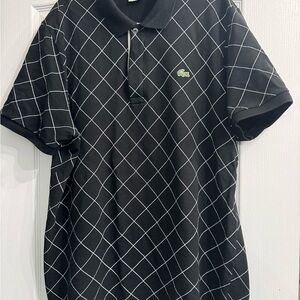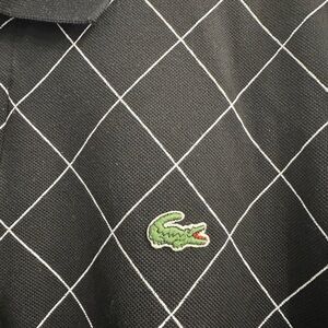 Lacoste Men's cotton Black Polo with White Grid Pattern. Ptp 24” length 28”