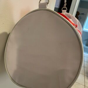 This is a stylish and functional duffel bag from Lacoste Parfums. It's a great size for a gym bag, a carry-on, or a weekend trip.