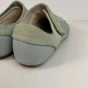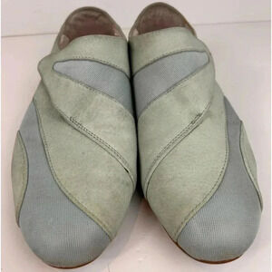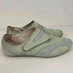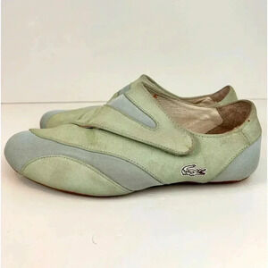 Lacoste sneakers done the Lacoste way! Suede pale blue & green, Velcro, in beautiful beach colors. Size 7.5. Some minor wear, see photos