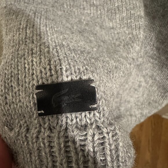 Gorgeous Silver Label Lacoste men's crew sweater with woven detail. Made in France. Beautiful blend of Acrylic, Wool & Angora. Size 6, would say translates to a L.
