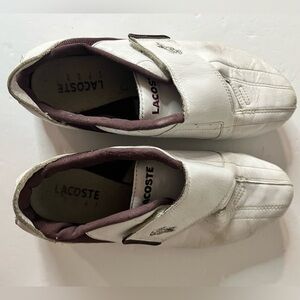 Lacoste Sport Women’s White & Burgundy Slip-On Sneakers Size 5 Casual Velcro Shoes