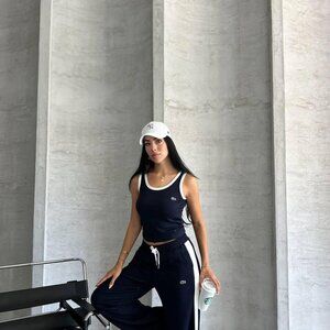 Lacoste White & Navy Athleisure Set - Tank Top & Track Pants Size S, M, L, XL