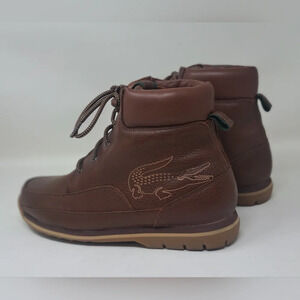 Lacoste Winter Chocolate Leather Hiking Boots Mid Lace Up Crocodile 9 US 42 EU