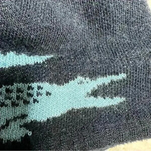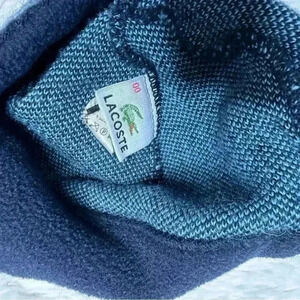 Dark blue in colour with a lighter blue Lacoste crocodile on the front.