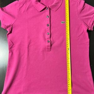 Women's Lacoste Polo Shirt Short Sleeve Size Medium Fuscia Pink with 5 buttons.