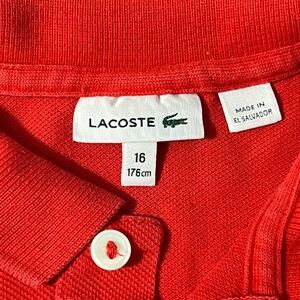 Pre-owned Women's Polo Shirt Short Sleeve Lacoste size 16 Red Pique Polo