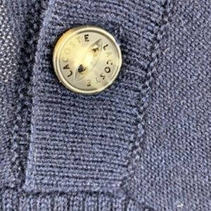This is a light weight wool sweater dress with boat neck and buttons on the shoulders, very suitable for the spring. In almost perfect condition with one tiny pull on the navy stripe at the bottom in the back (see picture) Otherwise amazing shape.
