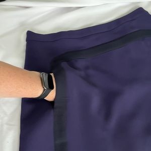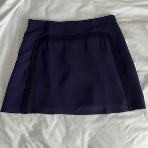 Purple mini skirt by Lacoste, Black strip around front but not back. Has 2 pockets and a zipper closure at the back.