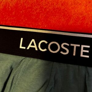 Lacoste teal green logo-waist boxer brief new with tags. Very comfy, stretch jersey mande of 95% cotton and 5% spandex, double layered at the front. Colour is accurate in the stock photos, mine are taken in artificial light. Marked size S, please see pictures for measurements. This item comes from a smoke free, pets friendly home. Recycled bags/box used when possible. Thanks for watching!