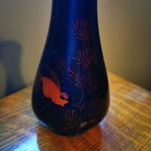 simply stunning black lacquer vase with very subtle goldfish scene