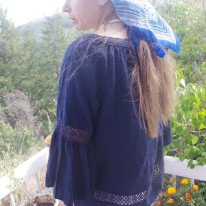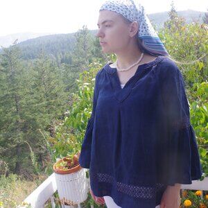 Ladies 100% linen blouse ,size Large ,by Crown & Ivy ,made in India .The blouse is navy color ,in very good condition.