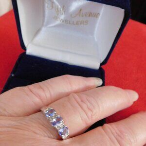 Ladies 10K White Gold Ring with Sapphires & Moissanite Stones