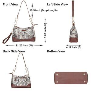 Compact Yet Functional Tote: Weighing just 430g and measuring 11.25" x 4.12" x 6.62", it’s a versatile option as a women's tote bag, shoulder purse, or small satchel for daily use and special occasions.