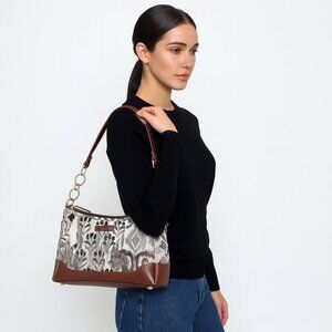 Elegant Tapestry & Leather Blend: This Sling Hobo Shoulder Bag is Made from premium tapestry fabric with genuine leather trims and a stylish chain strap with a leather grip, offered in Vintage, Geometric, Botanical, Floral & Abstract Designs.
