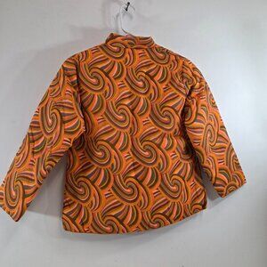 Ladies Asian Frog Button Quilted Blouse Orange Swirl Pattern Size Small Vintage