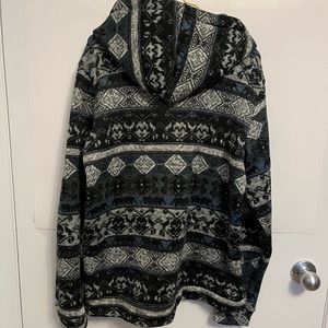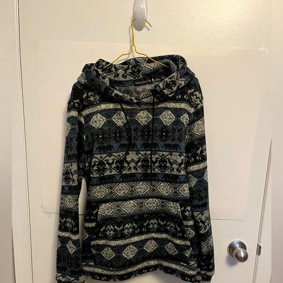 Aztec design ladies hoodie in like new condition blue black and grey in a size small made by Taoniuchaopin 10% cotton and 90% polyester fiber so soft and warm.