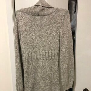 Sweater is 100% acrylic, with a cable knit design. There is a five button closure at the front. The length of the sweater is 31".