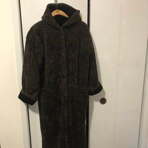 Ladies Black And Brown Hooded Reversible Coat Size Medium