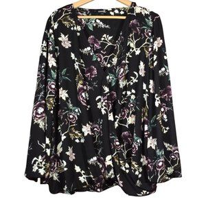 Ladies Black/Purple Floral Print Wrap Blouse