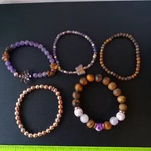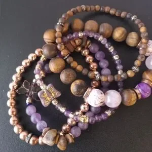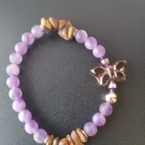 -Metal beads, amethyst beads, tiger eye beads, glass butterfly beads
