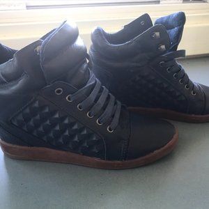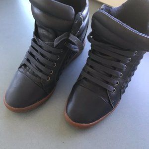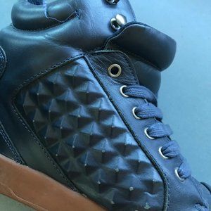 Ladies Leather Bronx Wedge Runners Navy Blue Size 39