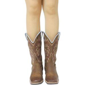 🆕Ladies Brown Embroidered Western Cowboy Boots Mid Calf Square Toe Leather