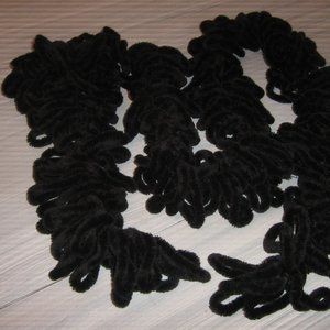 Black loop scarf, soft velour type fabric. Length is 60 inches.