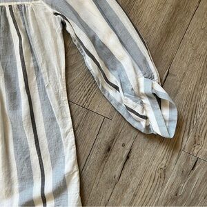 Lightweight striped blouse, gorgeous gauzy fabric. Sleeves are slightly puffy, and feature 3/4 length with oversized cuffs.