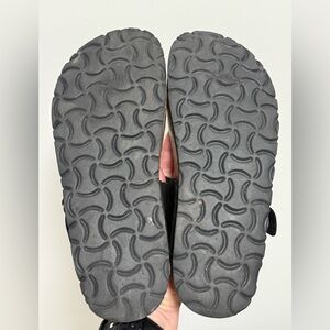 Black straps with tan and black base