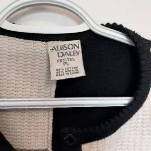 Allison Daley cardigan color block, in Royal blue, black,Grey, and off white. button up in size petit large.